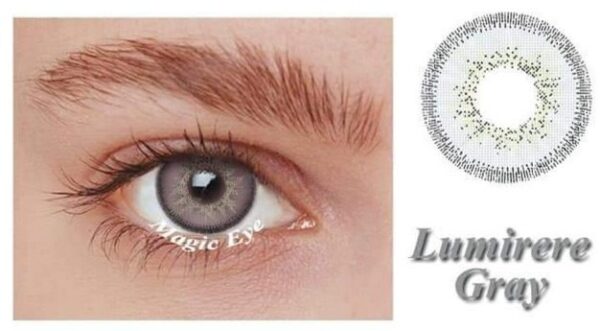 Magic Eye Lumirere Gray Shade contact lenses feature a cool gray tone with pearl-silver undertones for a luminous and elegant eye enhancement. Lightweight, breathable, and comfortable for all-day wear, they deliver a soft and refined finish.