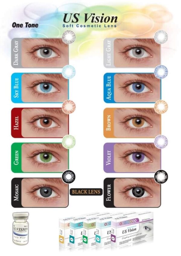 US Vision One Tone Shades enhance the eyes with clarity and softness, making them ideal for users who want a noticeable yet elegant color change. The smooth lens design allows the shade to blend seamlessly with the natural iris, creating a polished look that suits both light and dark eyes.